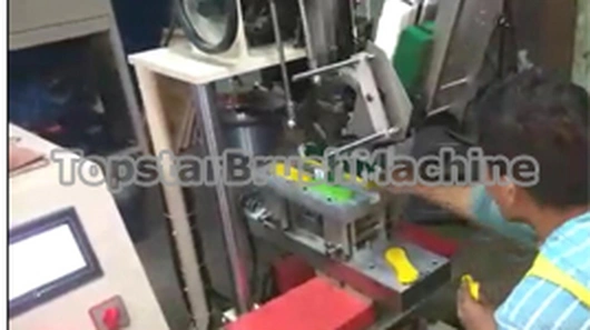 Компания YOFUPSA поделилась видеороликами о 5-осевом 3-головочном сверлильно-наполнительном станке TG3, изготавливающем туалетные щетки с длинной ручкой.